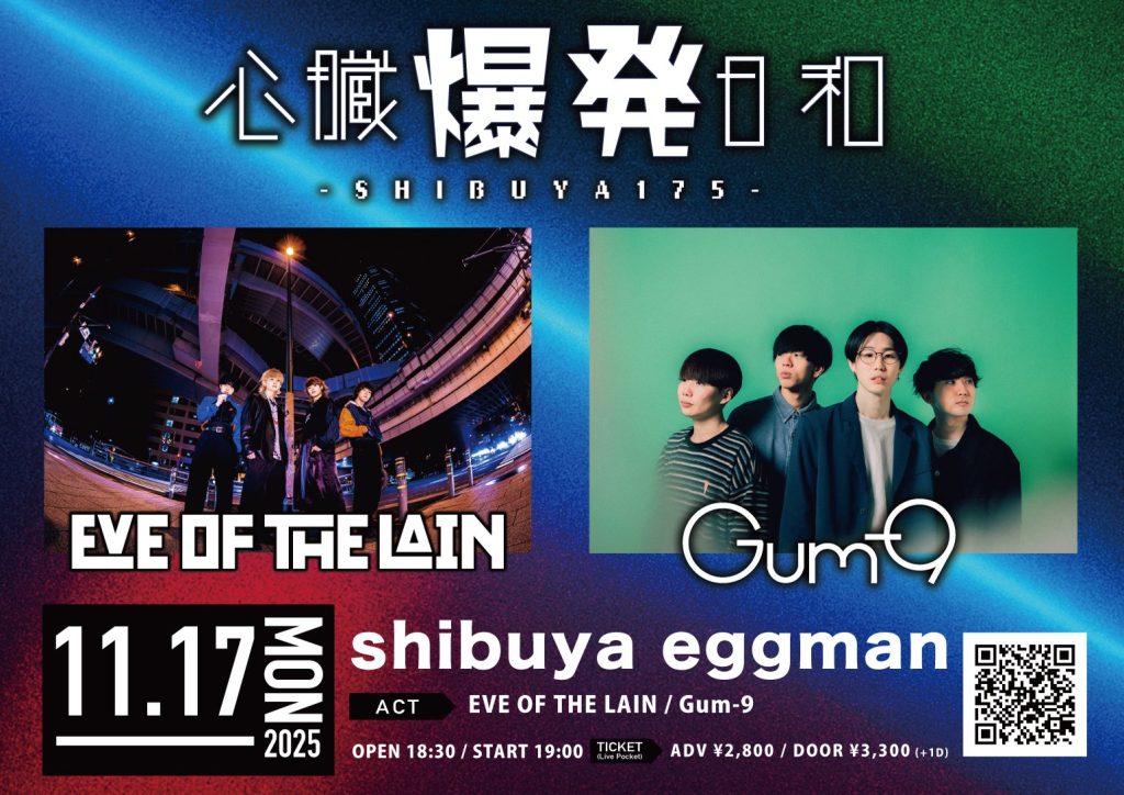 2025.10.22 up 11/17(月) 渋谷 心臓爆発日和-SHIBUYA175- 11/17(月)心臓爆発日和-SHIBUYA175-■場所: 渋谷eggman■OP/ST: 18:30/19:00■料金: ¥2800+1D 🎟️t.livepocket.jp/e/snbk175 « 前の記事 11/08(土) 仙台 猫背のネイビーセゾンpre.GLEMLiNS TOUR 一覧に戻る 次の記事 » 11/22(土) 新潟 Stylish FellowS